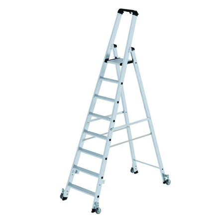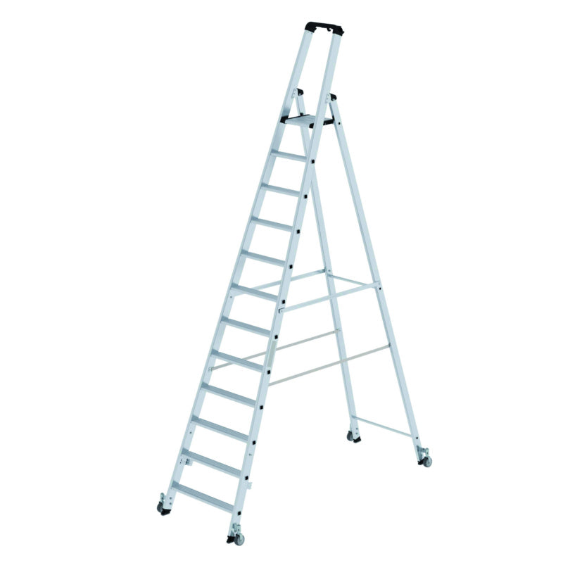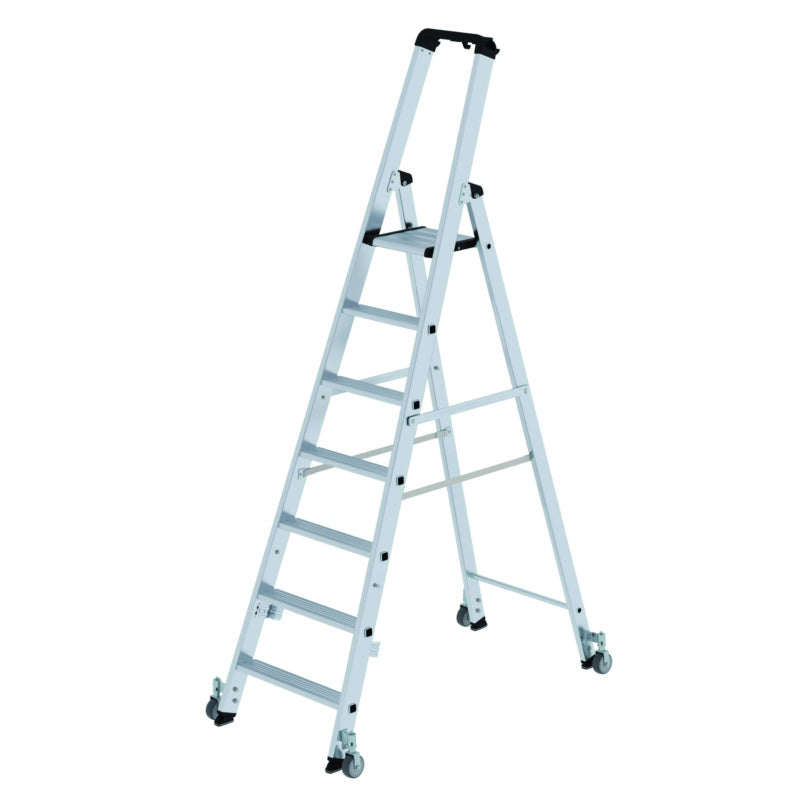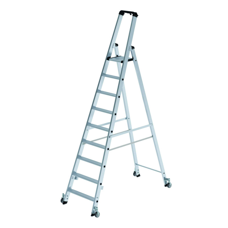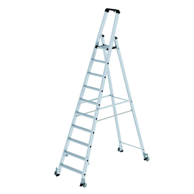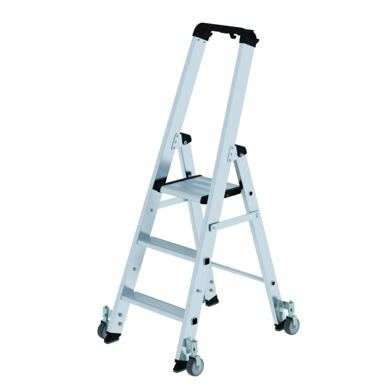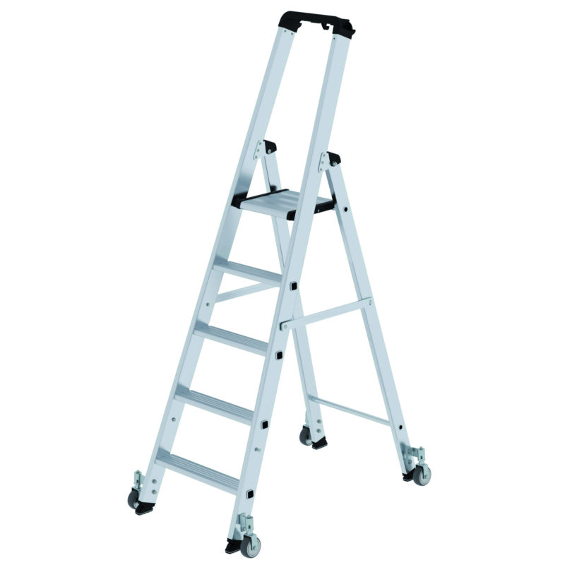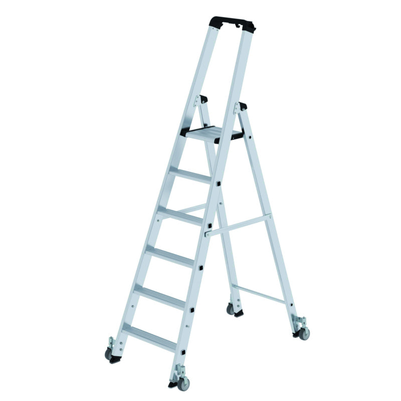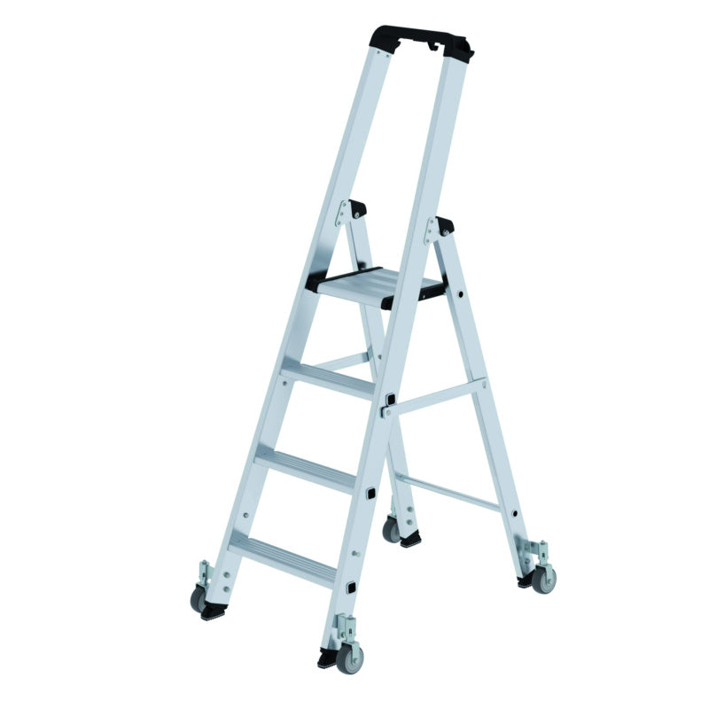 Hliníkové žebříky se schůdky, s plošinou, na kolečkách