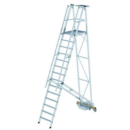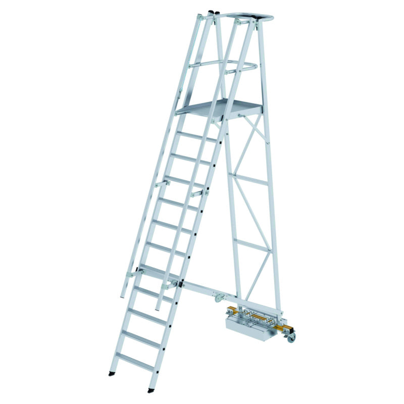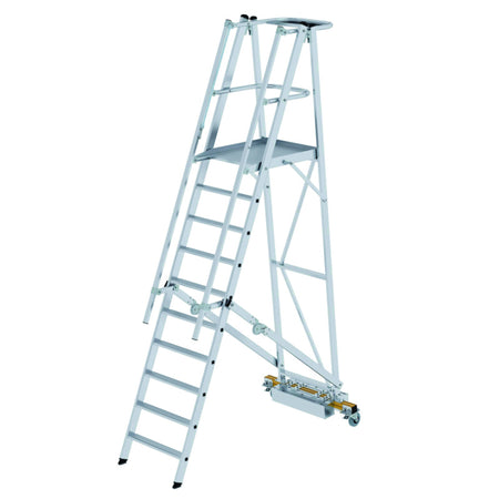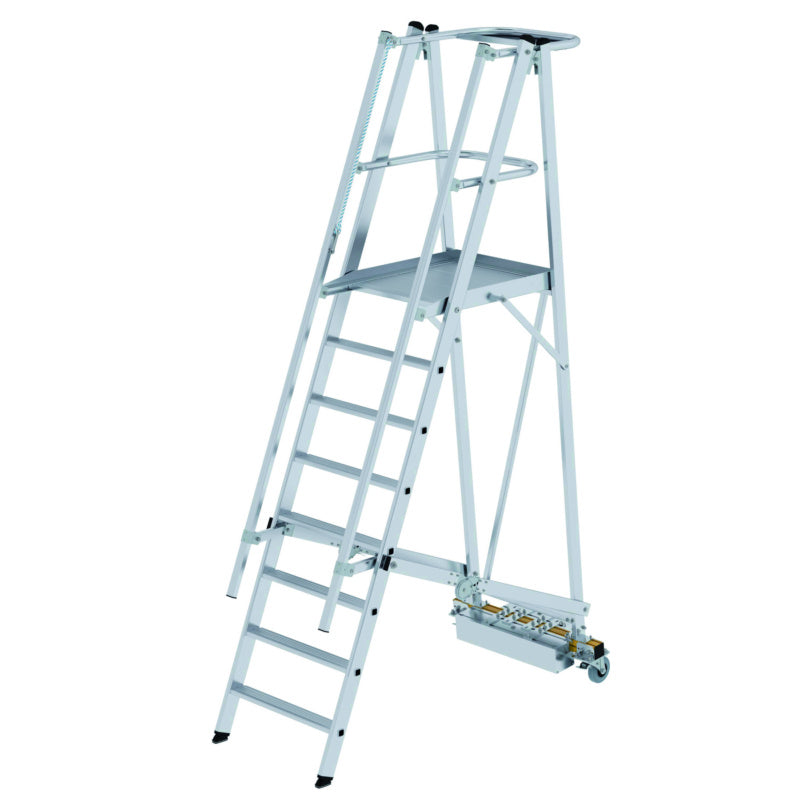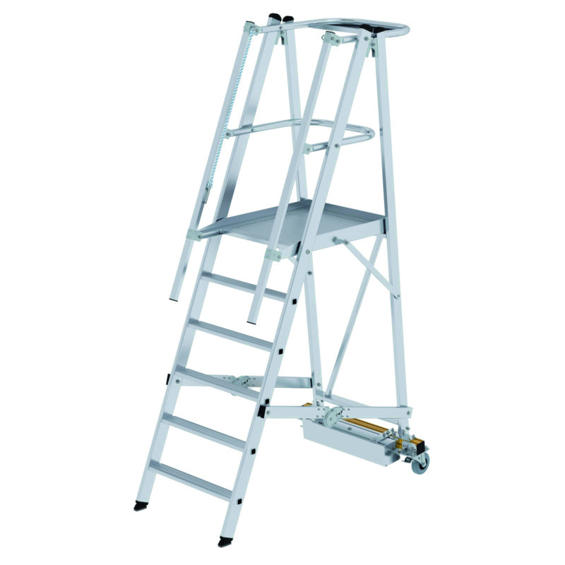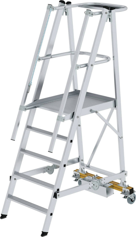 Hliníkový plošinový žebřík s kolečky, skládací, úzký podvozek