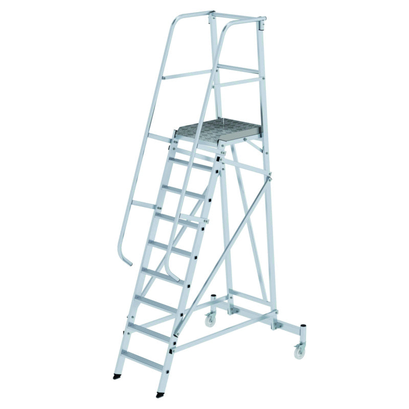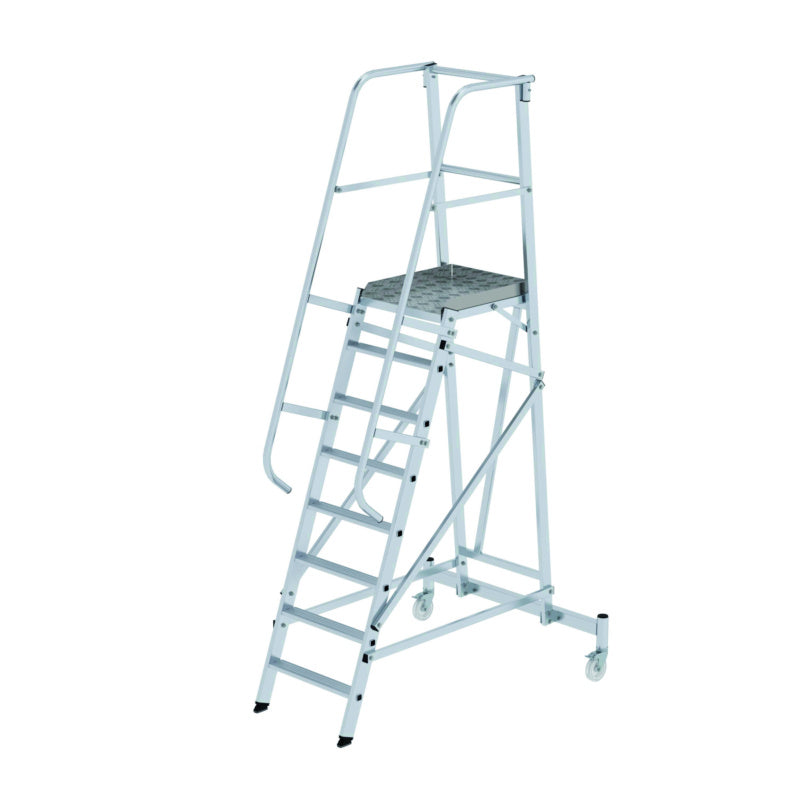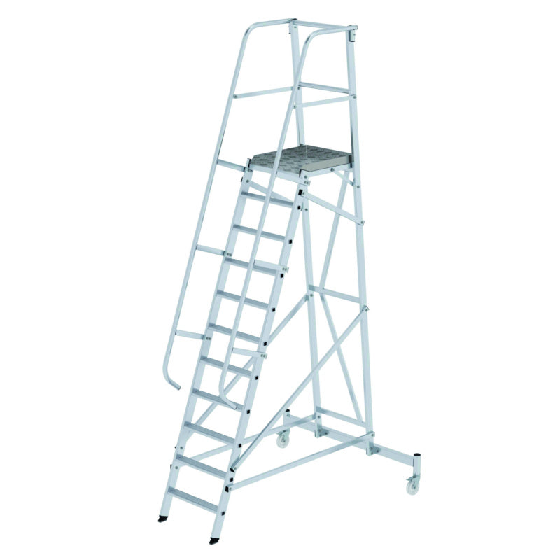Hliníkový plošinový žebřík s kolečky, vnitřní patky nivello®