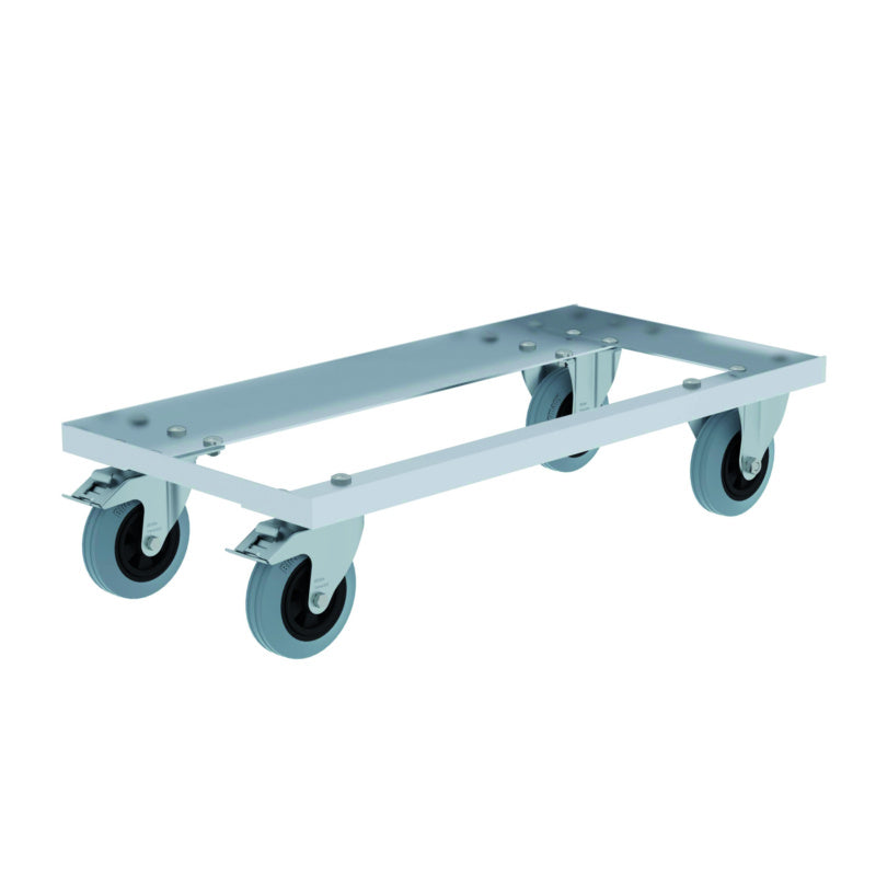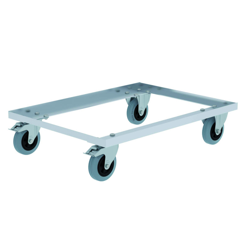 Dobře manévrovatelný, tichý chod díky dvěma pevným kolečkům o průměru 125 mm a dvě otočná kolečka o průměru 125 mm s brzdou