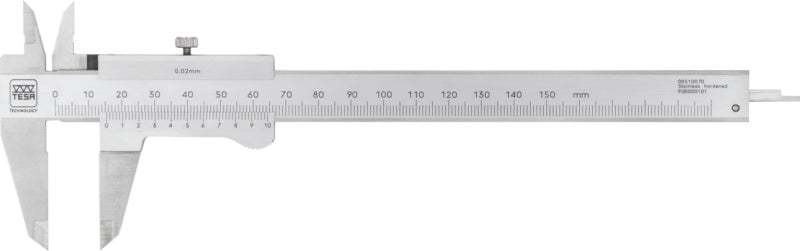 SKU: 31071015, Min./max. rozsah měření délky: 0-150 mm, Noniová stupnice: 0,02 mm, Noniová stupnice (v palcích): 1/1000, Délka měřících čelistí: 40 mm