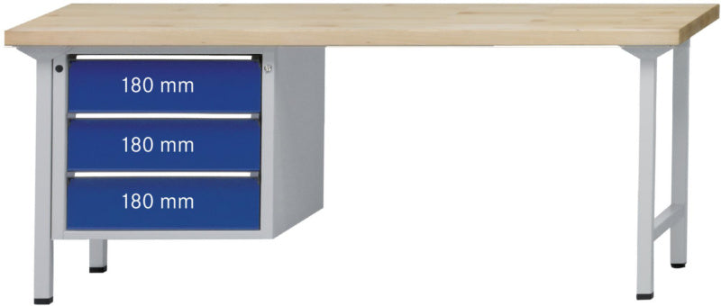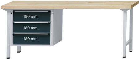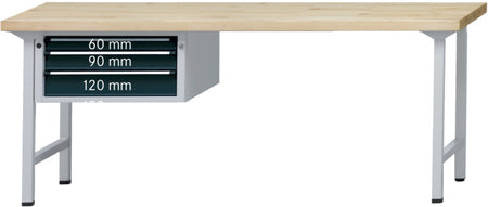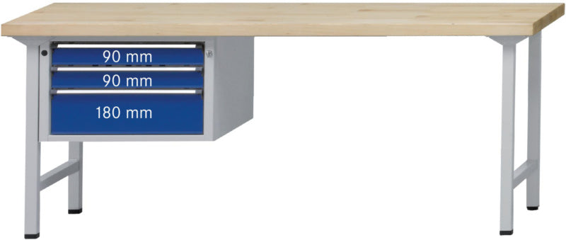 Bukový masiv 2000 mm, 3 zásuvky s plným vysunutím