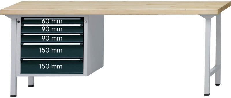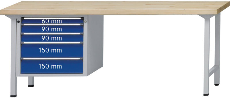 Bukový masiv 2000 mm, 5 zásuvek s plným vysunutím