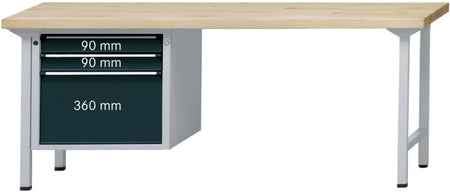 Bukový masiv 2000 mm, 2 zásuvky s plným vysunutím
