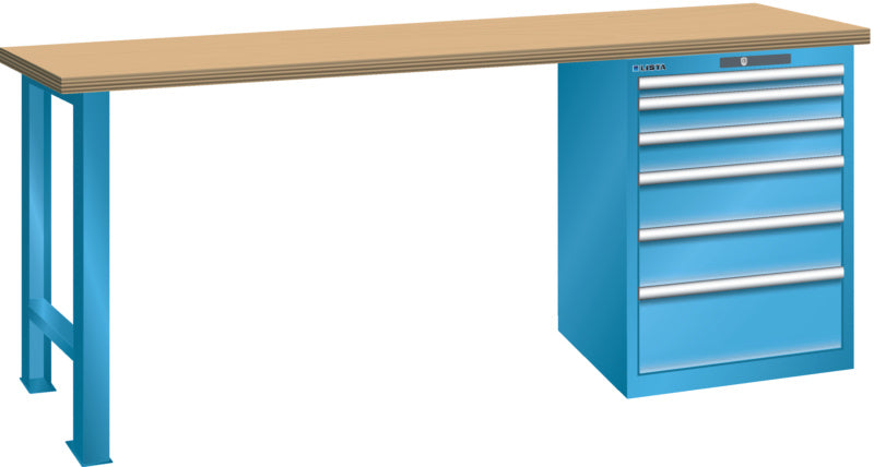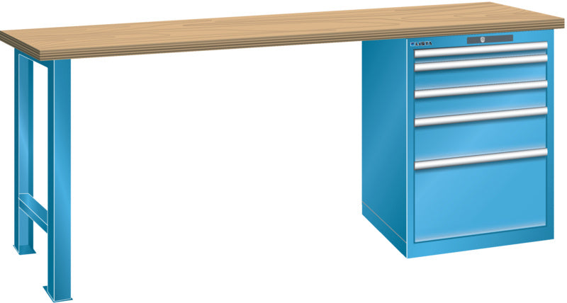 Rychlá a snadná montáž díky horním deskám na dílenský stůl s předvrtanými otvory včetně objímky pro připevnění všech dílčích konstrukcí a zásuvkových skříní