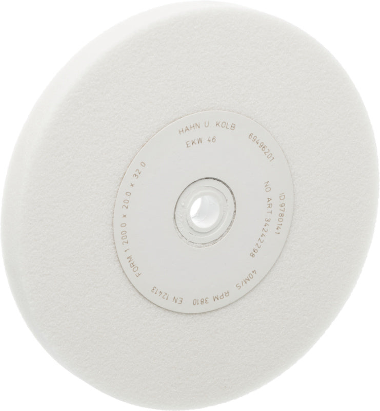 SKU: 69496201, Průměr kotouče: 200 mm, Tloušťka kotouče: 20 mm, Obráběné materiály: Vysoce legovaná ocel, kalená;Nízkolegovaná ocel, kalená;HSS, Materiál brusného materiálu: Bílý tavený oxid hliníku