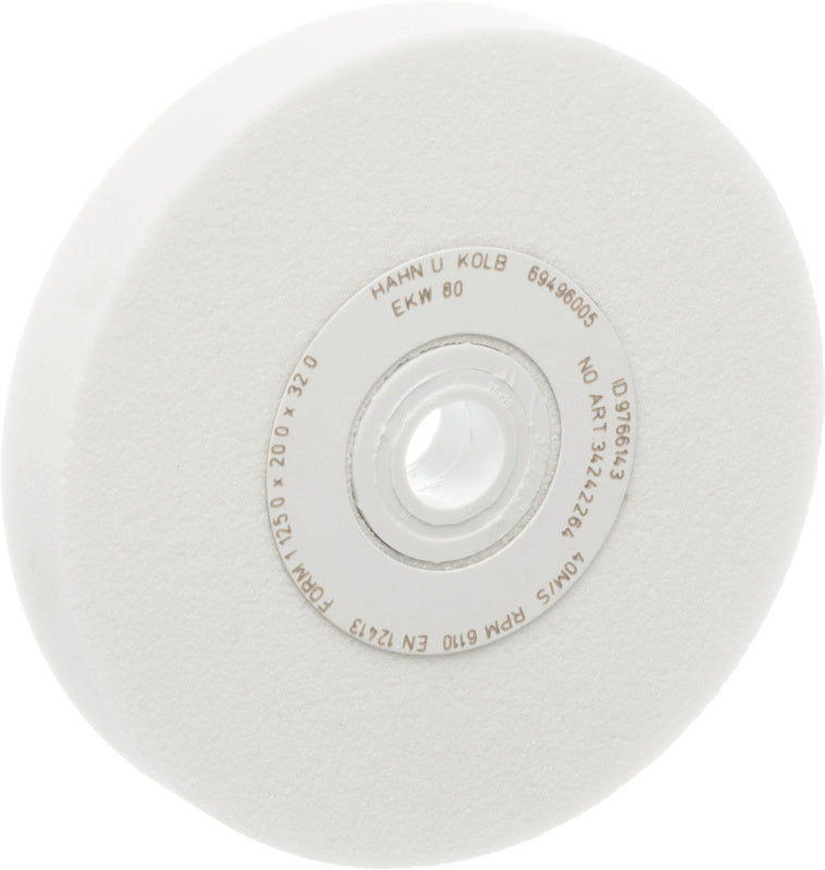SKU: 69496005, Průměr kotouče: 125 mm, Tloušťka kotouče: 20 mm, Obráběné materiály: Vysoce legovaná ocel, kalená;Nízkolegovaná ocel, kalená;HSS, Materiál brusného materiálu: Bílý tavený oxid hliníku