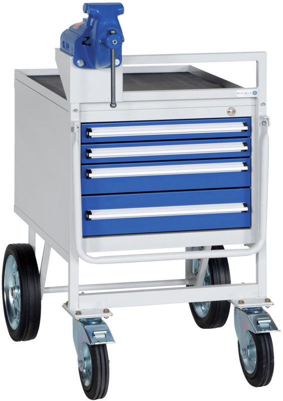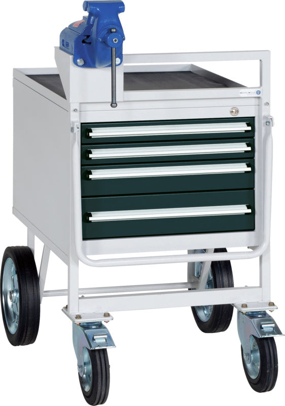 Kontejner na kolečkách s upínací deskou pro svěrák