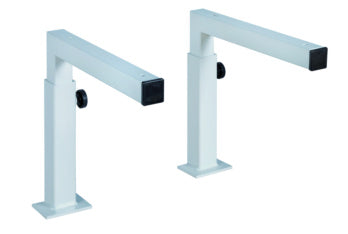 Konzoly, s nastavením výšky: Umožňuje nastavení police do čtyř různých výšek s rolovacím okrajem. Výška nastavení nad deskami 230, 270, 310 a 350 mm. Jsou zašroubovány přes desku pro dílenský stůl (je nutná montáž předem). Vč. spojovacího materiálu. Verze: Vyrobeno ze čtvercové ocelové trubky, vč. montážního materiálu pro každý kus. Barva: Světle šedá RAL 7035.