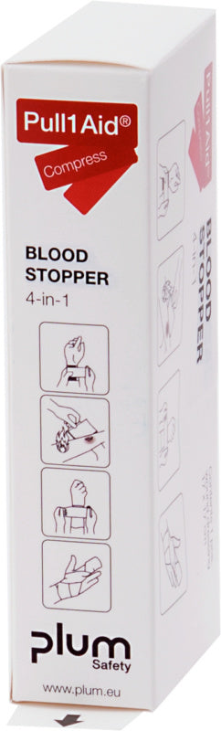 Sterilní kompresní obvaz se čtyřmi funkcemi: Používejte jako kompresní tampon při silném krvácení, jako ochranu povrchových ran a popálenin, jako obvaz na popáleniny s povrchem pro ochranu ran nebo jako dočasnou pomoc
