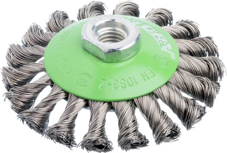 Kuželový kartáč s drátem splétaným proti směru hodinových ručiček