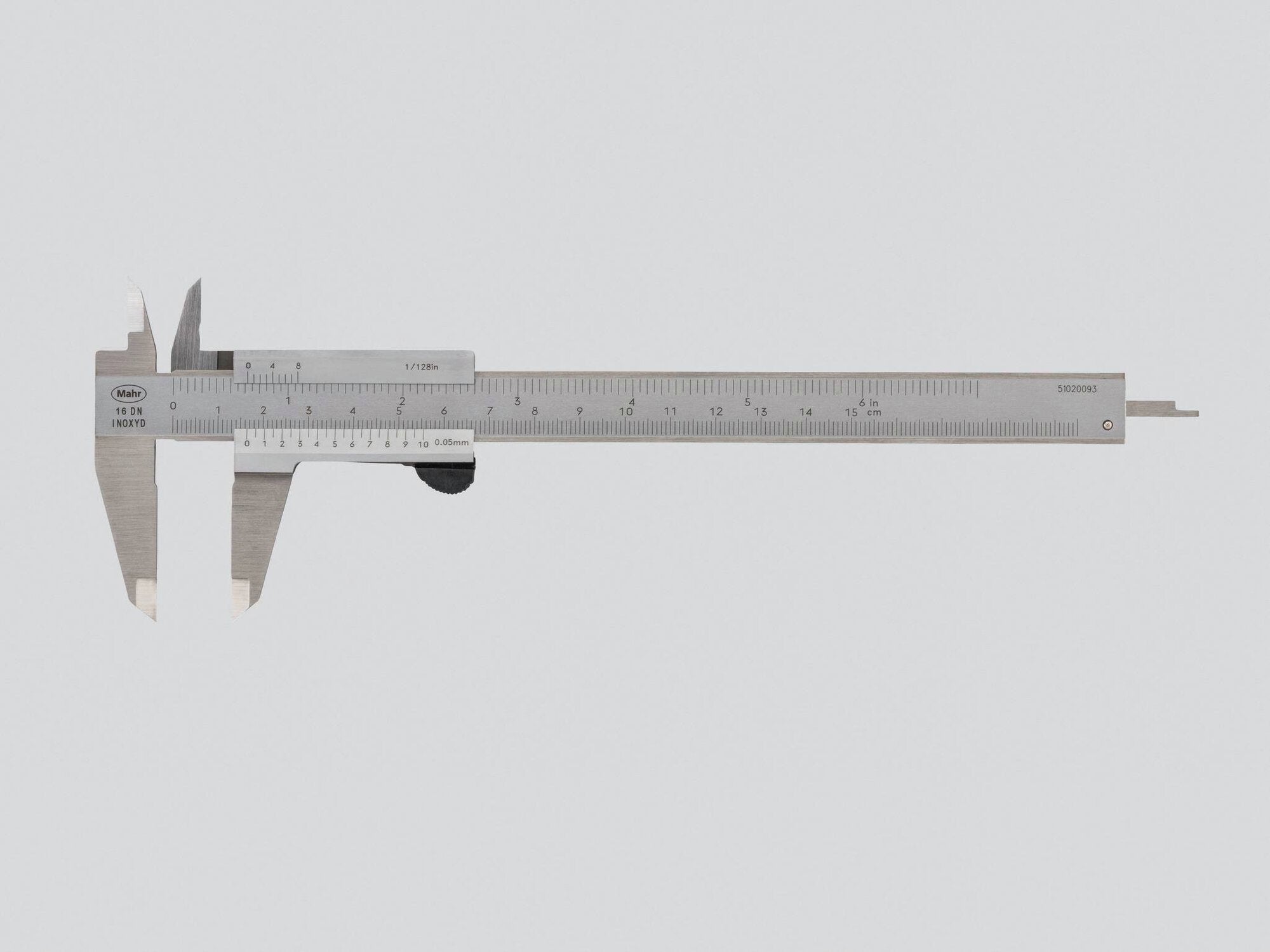 Posuvné měřítko s noniem MarCal 16 DN| Rozsah měření: 0 - 150 mm| Dělení stupnice mm: 0.05 mm / 1/128"| Automatická aretace| Rozsah dodávky: Tabulka závitů, Pouzdro