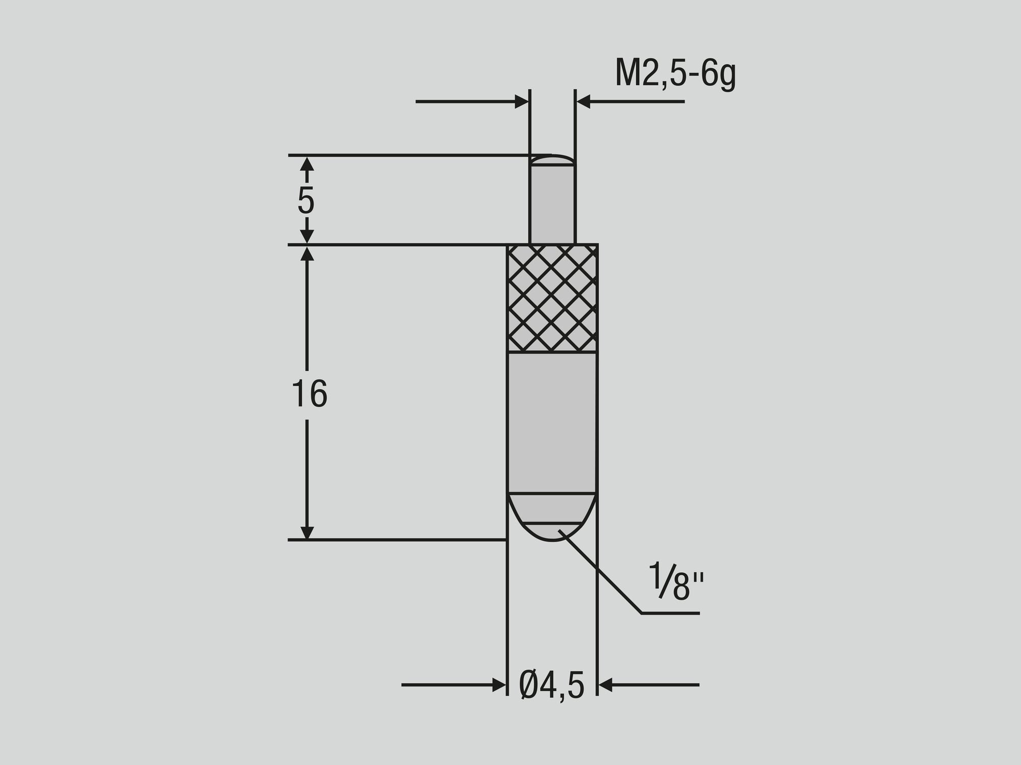 Náhradní měřicí dotek: Koule Ø 1/8“, délka 16 mm