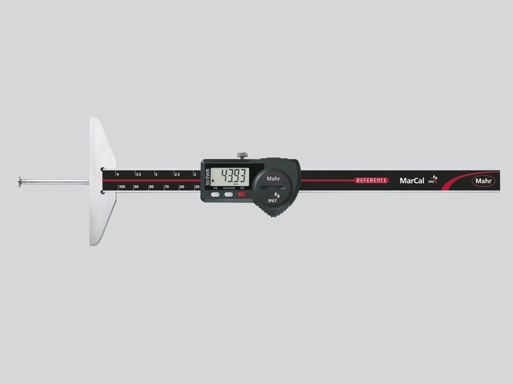 Digitální hloubkoměr MarCal 30 EWR-N |Rozsah měření: 0 - 100 mm|Rozlišení mm/inch: 0.01 mm / 0.0005 inch|Datové rozhraní: USB, Opto RS-232C, Digimatic|Třída krytí: IP 67|Rozsah dodávky: Baterie, Zkušební protokol, Návod k obsluze, Měřicí doteky 30 ENt (1 mm), 902 (4 mm) a 903 (4 mm), Pouzdro