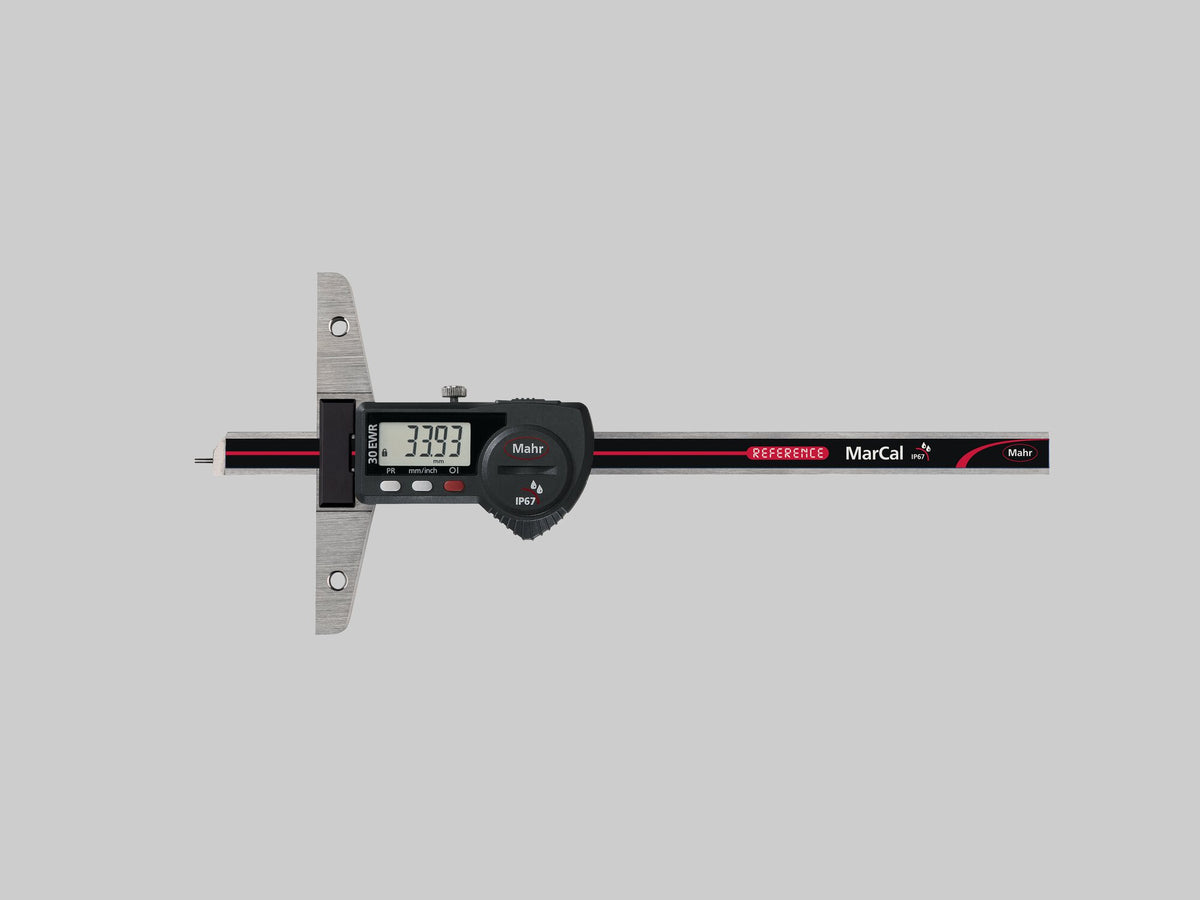 Digitální hloubkoměr MarCal 30 EWR |Rozsah měření: 0 - 200 mm|Rozlišení mm/inch: 0.01 mm / 0.0005 inch|Datové rozhraní: USB, Opto RS-232C, Digimatic|Třída krytí: IP 67|Rozsah dodávky: Baterie, Zkušební protokol, Návod k obsluze, Pouzdro