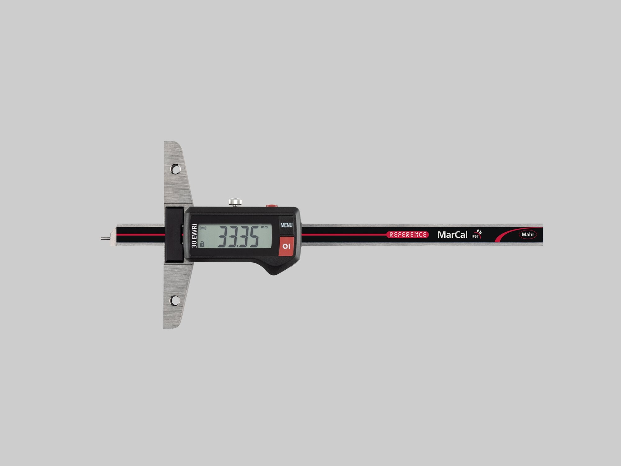 Digitální hloubkoměr MarCal 30 EWRi |Rozsah měření: 0 - 300 mm|Rozlišení mm/inch: 0.01 mm / 0.0005 inch|Datové rozhraní: Integrated Wireless|Třída krytí: IP 67|Rozsah dodávky: Baterie, Zkušební protokol, Návod k obsluze, Pouzdro