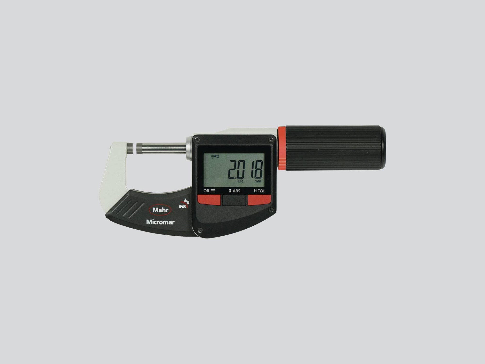 Digitální třmenový mikrometr Micromar 40 EWRi-L|Rozsah měření 0 - 25 mm mm|Prevence poškození obrobků: Neotáčivé vřeteno doléhá k povrchu kolmým pohybem, a je tak možné předcházet vzniku rýh, např. kvůli přítomnosti prachu po broušení na choulostivých a jemně opracovaných površích. Ideálně vhodné k měření tenkých kovových fólií, aniž by docházelo k jejich zkroucení a v důsledku toho k ohnutí. Měření závitů prostřednictvím drátků na měření závitů: Oba držáky měřicích drátků zůstávají díky neotáčivému vřetenu stabilně vůči sobě ve správné poloze. |Datové rozhraní: Integrated Wireless|Třída krytí: IP 65|ISO 3611|Rozlišení mm/inch 0.001 / .00005"|Rozsah dodávky: Nastavovací měrka (od měřicího rozsahu 25-50 mm), Baterie, Zkušební protokol, Návod k obsluze, Pouzdro