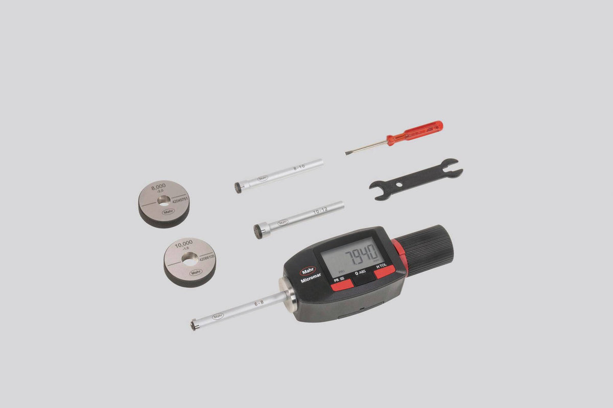 Samostředicí digitální mikrometr na měření vnitřních rozměrů v sadě Micromar 44 EWR| Měření: Průchozí otvory Slepé otvory | Třída krytí: IP 65| Datové rozhraní: MarConnect (obousměrný), USB, Digimatic| DIN 863-4| Rozsah měření 6 - 12 mm mm| Rozlišení mm/inch 0.001 / .00005"| Rozsah dodávky: Základní jednotka 44 EWR-g, Měřicí hlavice 44 Ak, Nastavovací kroužky, Baterie, Návod k obsluze, Pouzdro
