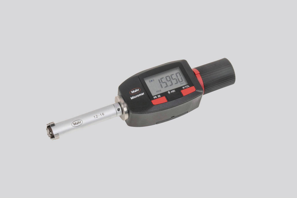 Samostředicí digitální mikrometr na měření vnitřních rozměrů Micromar 44 EWRi| Měření: Průchozí otvory Slepé otvory | Třída krytí: IP 65| Datové rozhraní: Integrated Wireless| DIN 863-4| Rozsah měření 12 - 16 mm mm| Rozlišení mm/inch 0.001 / .00005"| Rozsah dodávky: Základní jednotka 44 EWRi-g, Měřicí hlavice 44 Ak, Návod k obsluze, Baterie, Pouzdro