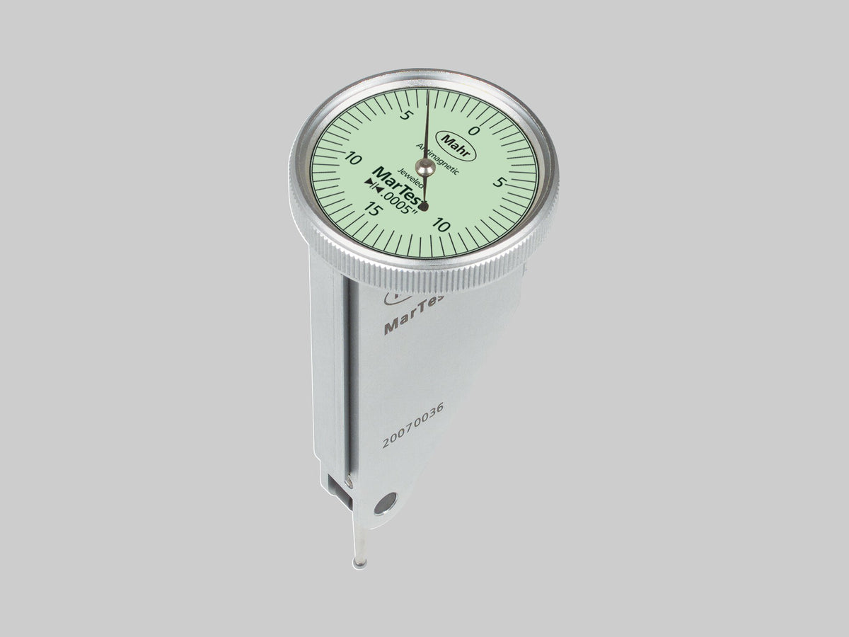 Páčkový úchylkoměr MarTest 801 V| Tovární norma| Rozsah měření: ± 0,015" |Dělení stupnice inch: .0005"| Rozsah dodávky: Klíč k výměně měřicích vložek, Měřicí dotek ø 2 mm, Upínací stopka 800a3/8, Zkušební protokol, Návod k obsluze, Pouzdro