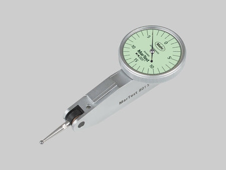 Páčkový úchylkoměr MarTest 801 S1| Tovární norma| Rozsah měření: ± 0,015" |Dělení stupnice inch: .0005"| Rozsah dodávky: Klíč k výměně měřicích vložek, Měřicí dotek ø 2 mm, Upínací stopka 800a3/8, Zkušební protokol, Návod k obsluze, Pouzdro