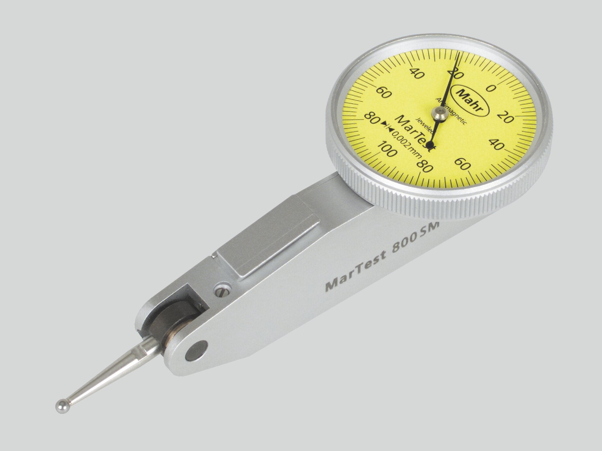 Páčkový úchylkoměr MarTest 800 SM| DIN 2270| Rozsah měření: ± 0.1 mm| Dělení stupnice mm: 0.002 | Rozsah dodávky: Klíč k výměně měřicích vložek, Měřicí dotek ø 2 mm, Upínací stopka 800a8, Zkušební protokol, Návod k obsluze, Pouzdro