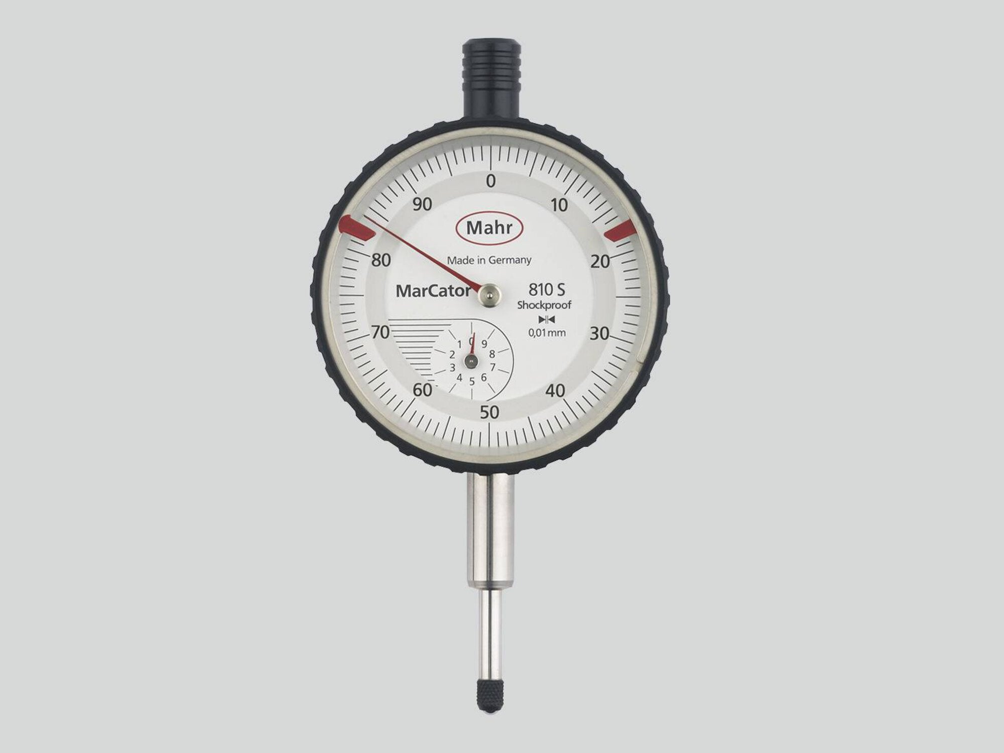 Číselníkový úchylkoměr MarCator 810 S| DIN 878| Měřicí rozsah v mm: 10mm| Dělení stupnice mm: 0.01 | Rozsah dodávky: Pouzdro
