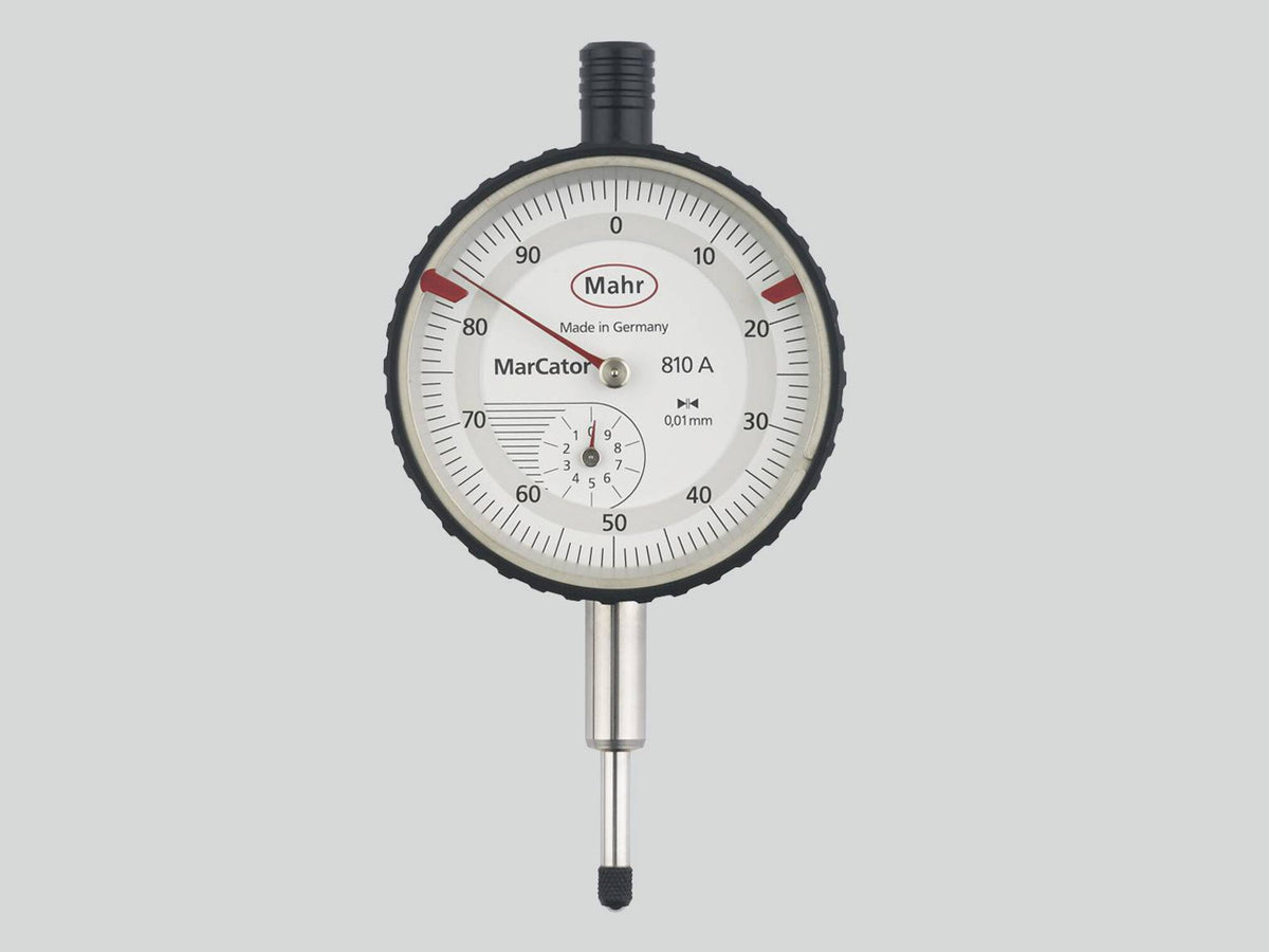 Číselníkový úchylkoměr MarCator 810 A| DIN 878| Měřicí rozsah v mm: 10mm| Dělení stupnice mm: 0.01 | Rozsah dodávky: Pouzdro
