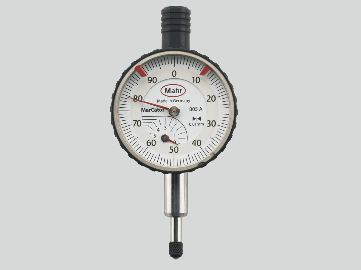 Malé číselníkové úchylkoměry MarCator 805 A| DIN 878| Měřicí rozsah v mm: 5mm| Dělení stupnice mm: 0.01 | Rozsah dodávky: Pouzdro