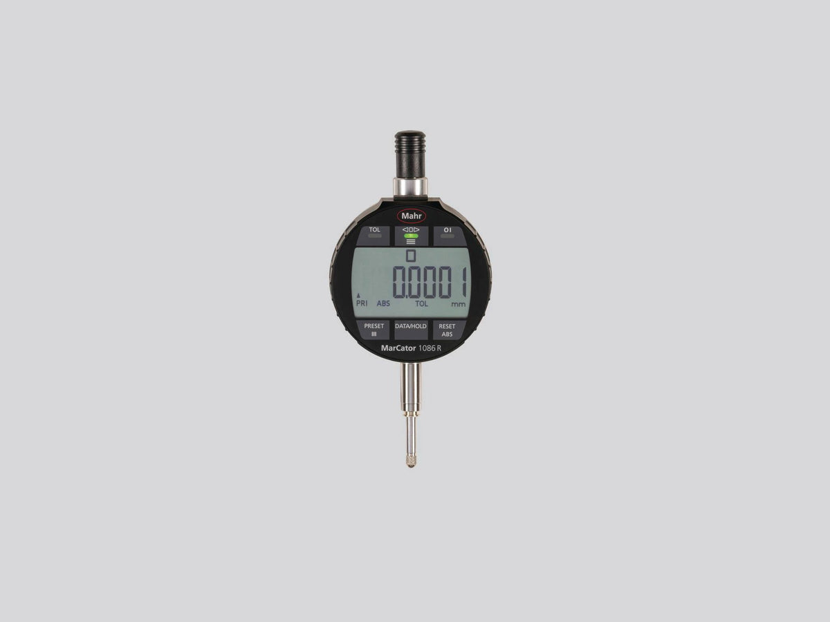 Digitální číselníkový úchylkoměr MarCator 1086 Ri-HR| Třída krytí: IP 42| Datové rozhraní: USB, Digimatic| Tovární norma| Měřicí rozsah v mm: 12.5mm| Číslicový krok v mm: 0.0001, 0.0005, 0.001, 0.002, 0.005, 0.01| Číslicový krok v palcích: .00001", .00002'', .00005", .0001", .0002'', .0005" | Rozsah dodávky: Baterie, Zkušební protokol, Návod k obsluze, Lepenkové krabice
