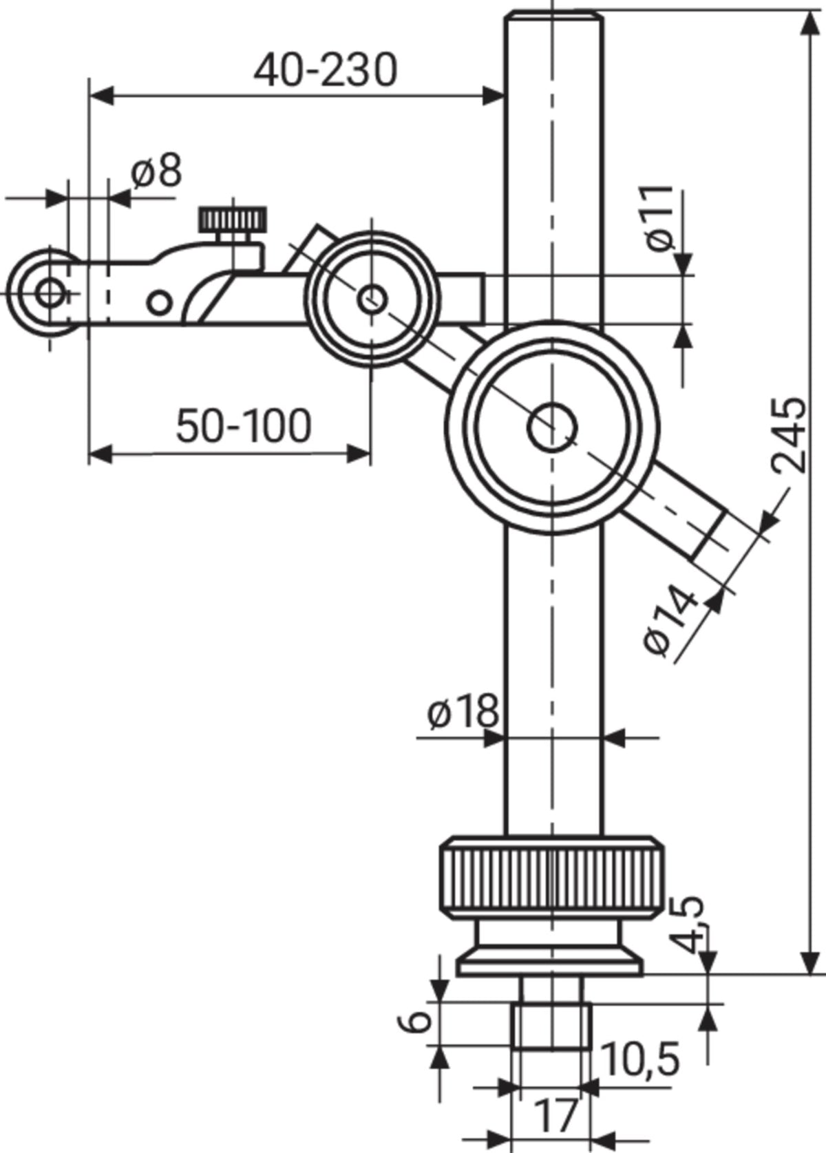 Tyčové sestavy 815 XN| s vodicí vložkou do drážky Dva klouby Rýhovaná matice pro upevnění sloupku Sloupek a ramena z nerezové oceli Přesné nastavení | Celková výška 245 mm