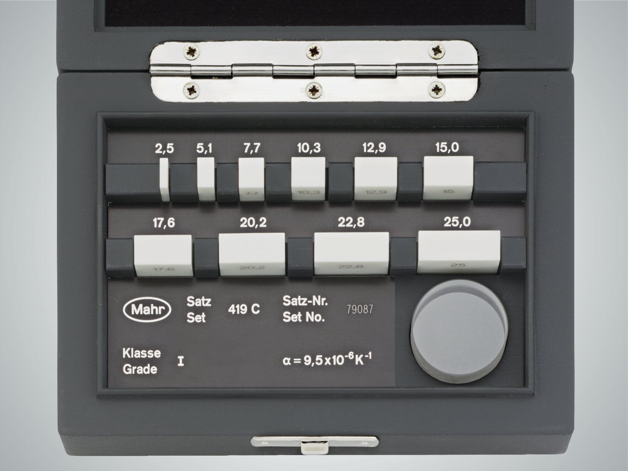419 C Sada keramických koncových měrek|10 Pieces|Stupeň přesnosti: 1|DIN EN ISO 3650|Dřevěné pouzdro s přehlednými popiskami, Kalibrační certifikát Mahr