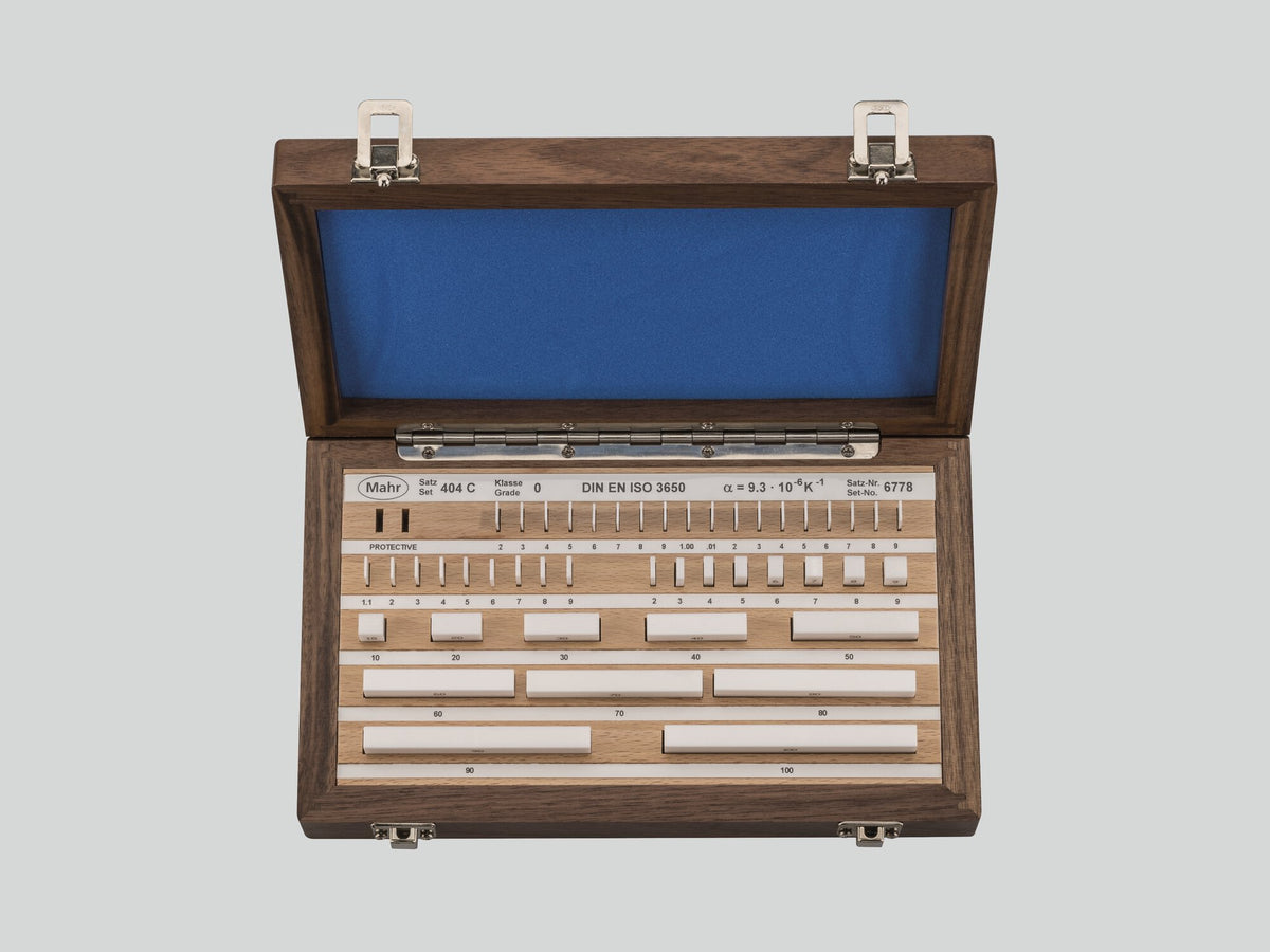 405 C Sada keramických koncových měrek|47 Pieces|Stupeň přesnosti: 0|DIN EN ISO 3650|Dřevěné pouzdro s přehlednými popiskami, Kalibrační certifikát Mahr