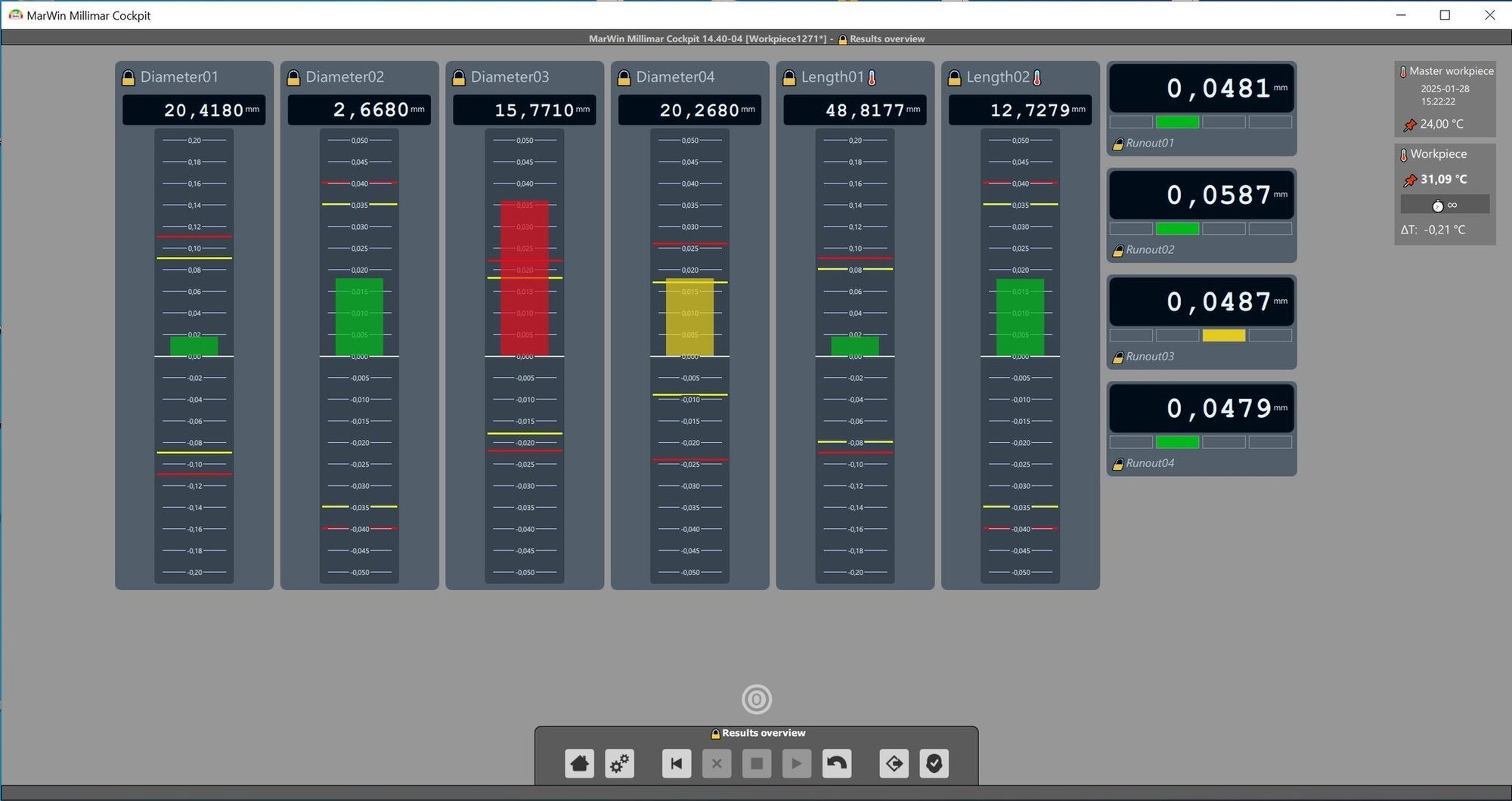 Software MarWin 13 Millimar Cockpit • Inteligentní a univerzálně použitelný software pro komplexní měřicí úlohy ve výrobním sektoru • Interaktivní software s možností dotyku • Velmi jednoduché a intuitivní ovládání • Pro připojení modulů Millimar N 1700 ve spojení s indukčními senzory a měřicími přístroji Mahr s USB, resp. bezdrátovým rozhraním • Operátorské úrovně chráněné heslem • Integrovaná online nápověda je přístupná přímo ze softwaru • Ukládání dat v MS-Excel nebo jako datový formát qs-stat • Systémové požadavky: MS Windows 7 nebo 10, minimálně 2 volná USB 2.0 rozhraní