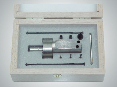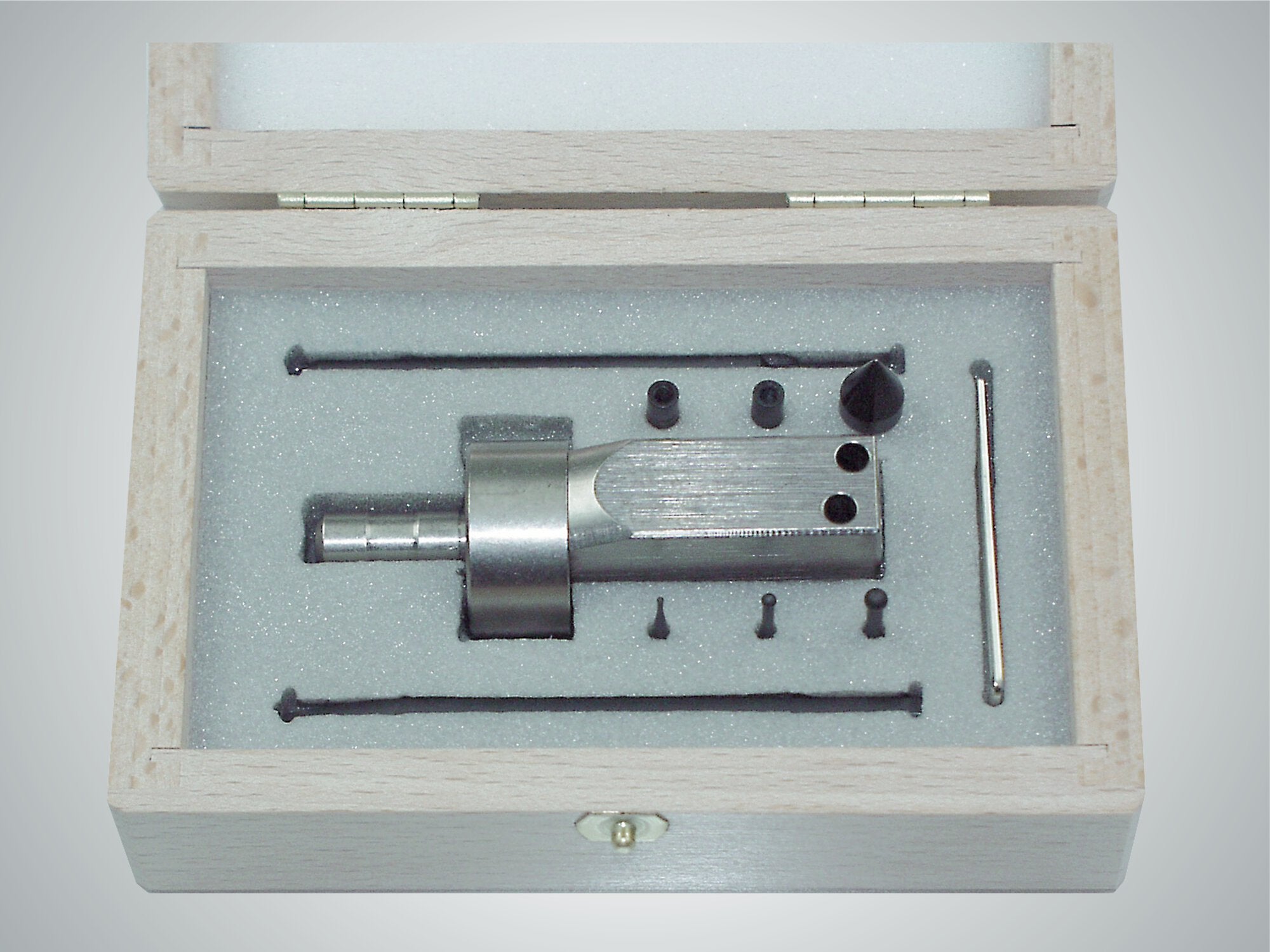 Univerzální sada malých doteků 817 ts3| Sada příslušenství pro drobné součástky a jemné drážky, zápichy a otvory v praktickém dřevěném pouzdru vhodné pro nosník 817 h4 s upínacím otvorem 8 mm | zahrnuje:| Základní těleso s upínací stopkou 8 mm| Dotek na měření hloubek| Botičkový dotek pro drážky a zápichy| Kulový měřicí dotek| Kuželový měřicí dotek| Prodlužovací díl| Adaptér pro měřicí doteky M2,5