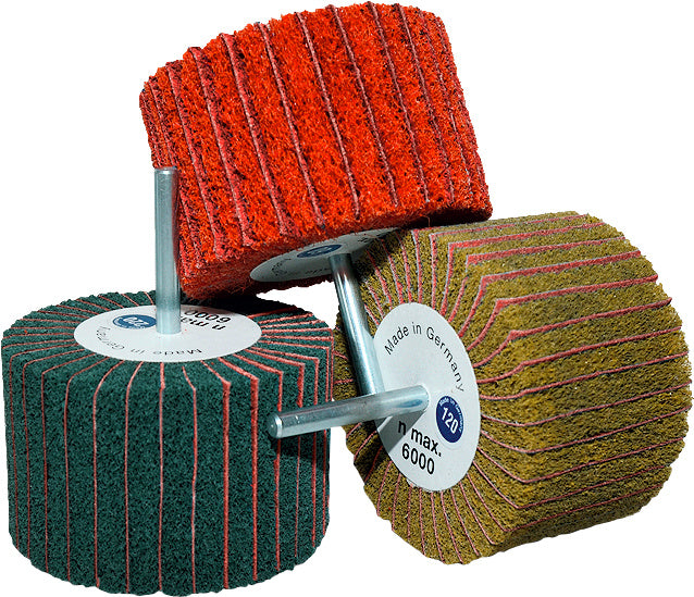 Vyrobeno z kombinace rouna s keramickým brusným zrnem, netkaných a textilních lamel, které jsou střídavě uspořádány kolem osy nástroje ve tvaru vějíře