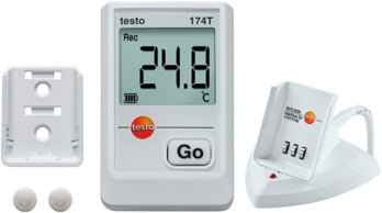 Mini zařízení pro registraci údajů 174T, 1kanálové, včetně nástěnného držáku, USB rozhraní pro programování a čtení mini zařízení pro registraci údajů, baterie (2x CR 2032 lithiové) a kalibrační protokol