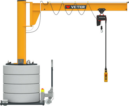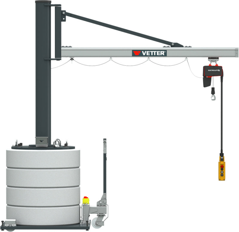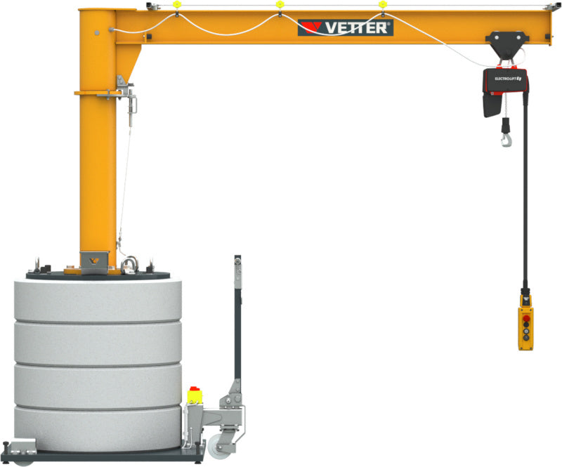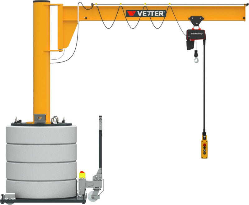 Jeřáb je samonosný díky závaží integrovanému v základně, což znamená, že nemusí být upevněn k podlaze.