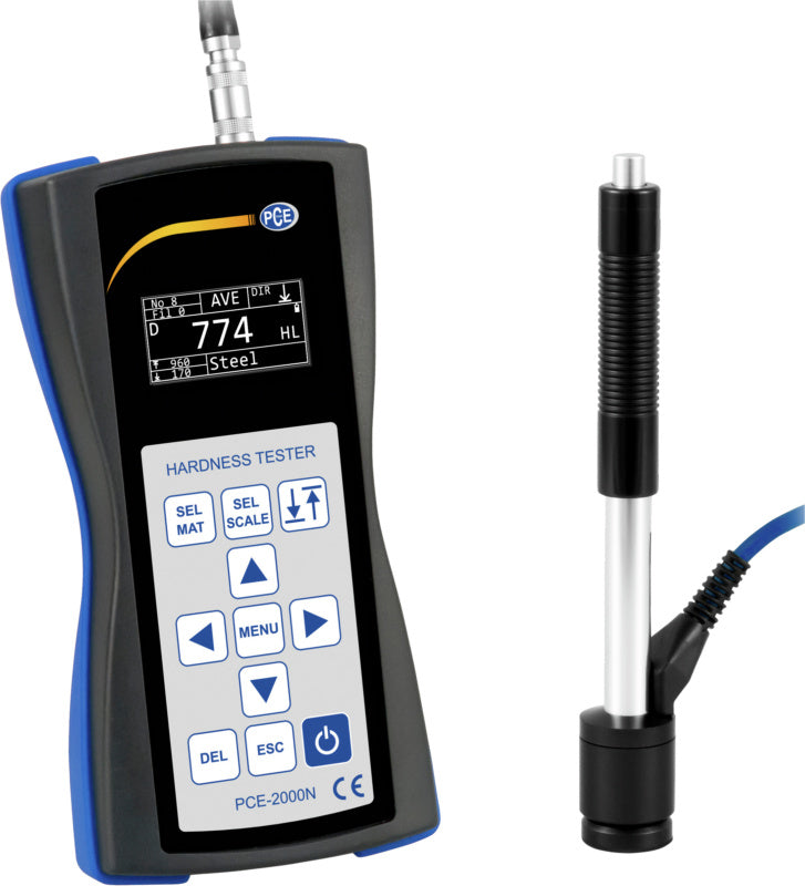 Pro výpočet a přímé zobrazení hodnot tvrdosti v HL (Leeb), HB, HV, HRA (Rockwell A), HRB (Rockwell B), HRC a HS (Shore). Vhodný pro velké součásti z oceli, nerezové oceli, litiny, slitin hliníku, mosazi, bronzu a mědi o hmotnosti přibližně 5 kg a více.