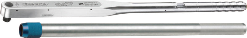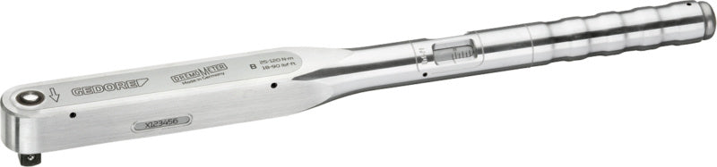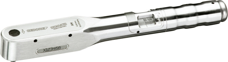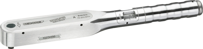 Utahovací moment se nastavuje a odečítá na stupnici, a sice otáčivým pohybem s úhlovým klíčem integrovaným v konci rukojeti.