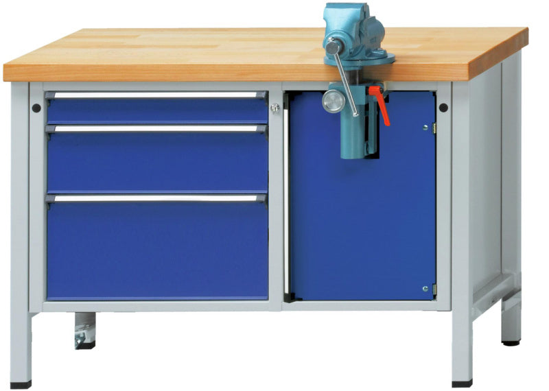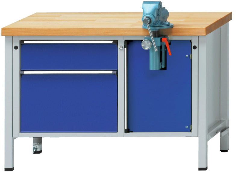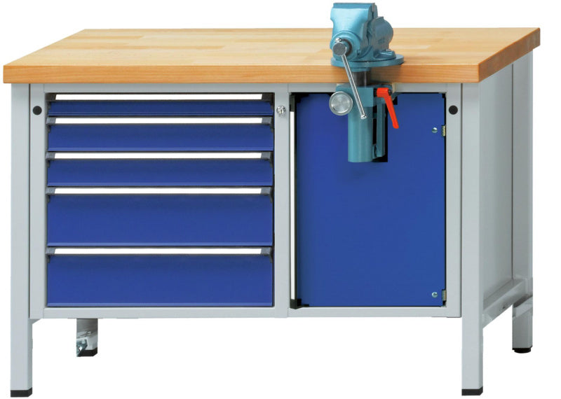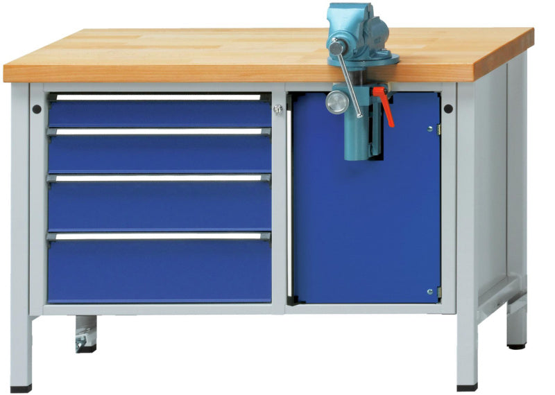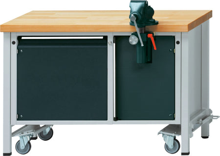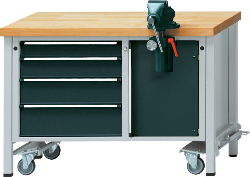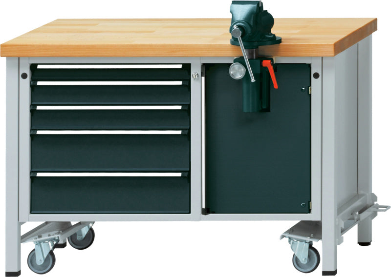 Sklápěcí pojízdné zařízení: poloha pro jízdu/klidová poloha se nastavuje jednoduchým pohybem páky na čelní straně dílenského stolu