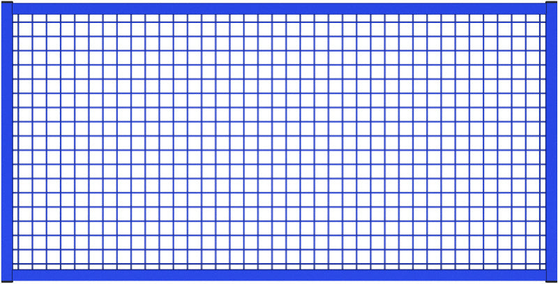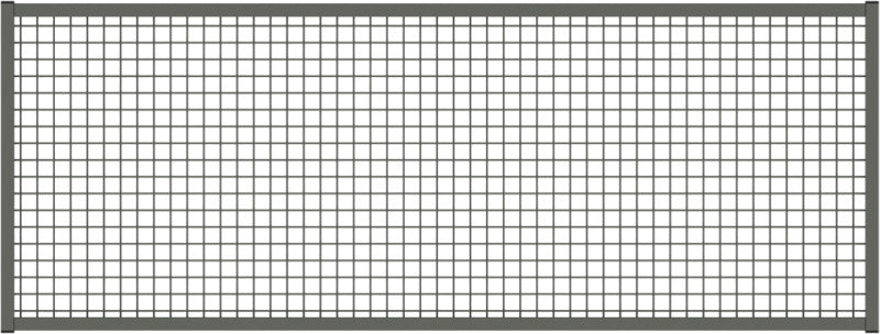 Robustní ocelová konstrukce s plochou drátěnou mříží 40 x 40 x 3,8 mm uchycenou v rámovém profilu 300 mm