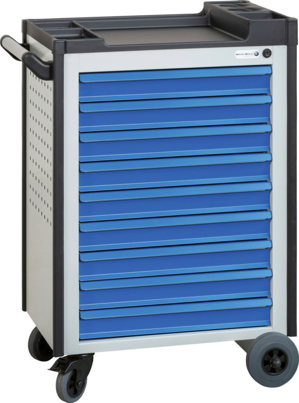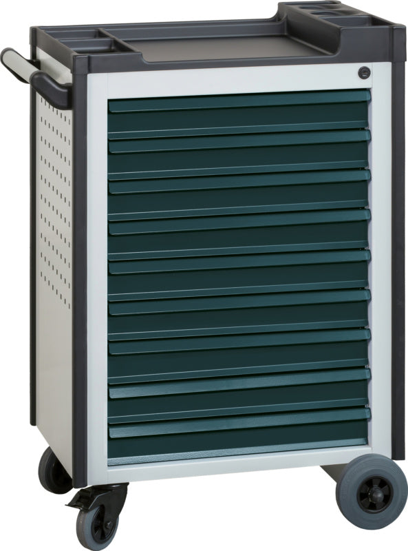 Nářaďový vozík se zamykáním vysunutí jednotlivých zásuvek