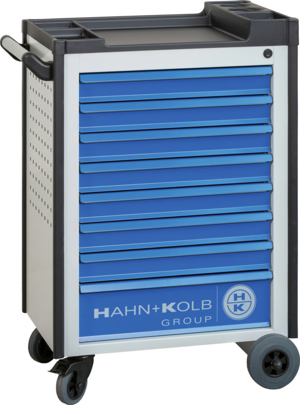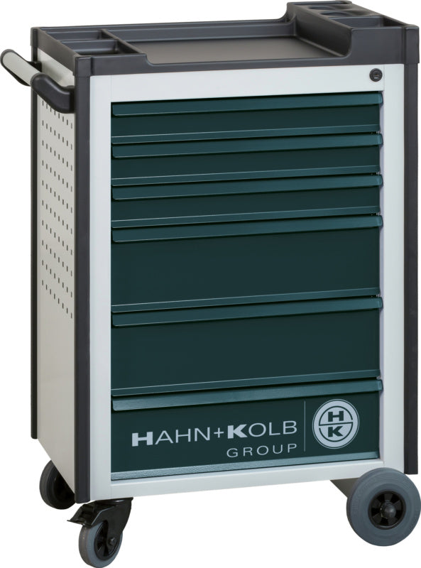 Robustní konstrukce z ocelového plechu s pracovní deskou z plastu ABS s integrovanými přihrádkami na malé díly