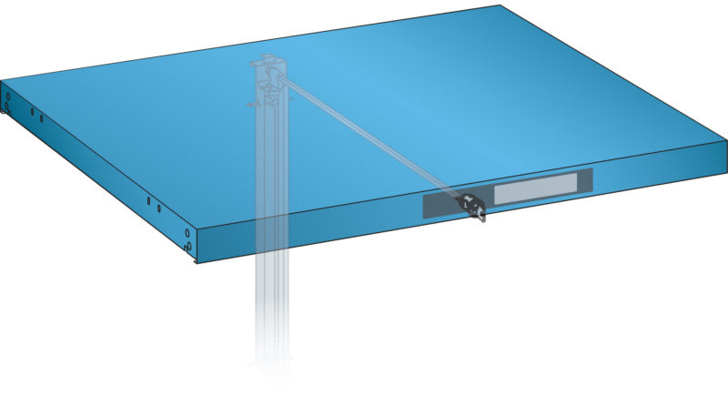 Vytahovací a nastavovací podklad pod interiérové dveře: vyrobeno z ocelového plechu, holubí šedá, NCS S 4502-B. Nosnost nástavné základny 75 kg, nastavitelná základna 200 kg. Police lze namontovat do stejné přihrádky skříňky v libovolném pořadí v rozmezí po 25 mm ve svislých podpěrách přihrádky skříňky.