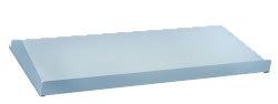 Hladké nebo štěrbinové police: Pro montáž ve sloupových rámech s použitím regálového stojanu, s navařeným výztužným profilem. Výběr mezi hladkým nebo drážkovaným provedením. Drážky ve vzdálenosti 15 mm od sebe pro dělení pomocí přepážek. Včetně 4 podpěr pro každou. Provedení: Ocelový plech.