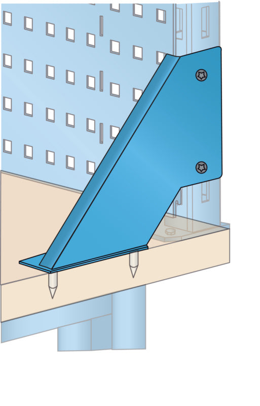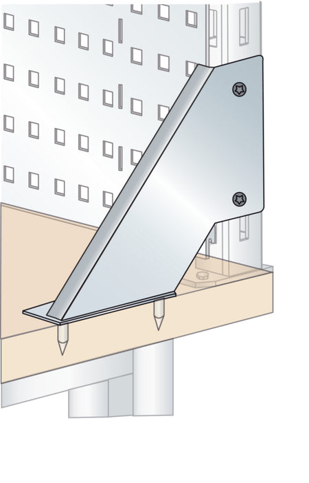 Nosná konzola pro nosný sloupek na desce: Pro další stabilizaci nosných sloupků na desce pracovního stolu. Absolutně nezbytné pro výšku sloupku 1400 mm. Provdení: Ocelový plech. Barva: dle barevného schématu.