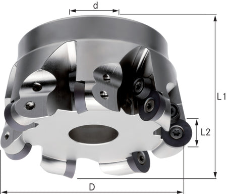 Pro vyměnitelné frézovací destičky RD..1003.., RD..12T3.., RD..1604..
