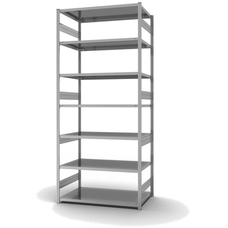 Pozinkovaný regálový rám a police s přídavným plastovým povlakem RAL 7035 (pozinkovaný montážní materiál)