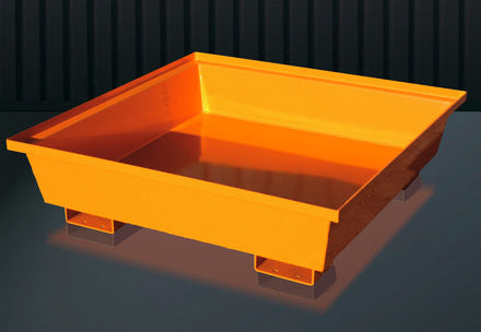 Zvláště hluboká vodotěsná a olejotěsná sběrná vana z oceli s kónickými bočními stěnami. Nohy této robustní ocelové sběrné vany fungují jako kapsy pro přepravu vysokozdvižným vozíkem. Ocelová sběrná vana je k dispozici v různých velikostech a objemech.